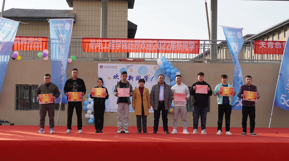 为热烈欢迎2022届新生入学,团结和凝聚青年,构建优良校风,树立先进典型,凝聚榜样力量,2022年2月24日下午17:30分,机电工程学院召开2023年迎新生暨优秀班团干部表彰大会。机电工程学院党总支书记马合木提·瓦依提、院长董燕、党总支副书记陈洪坤、副院长罗彩玉、全体班主任辅导员及全体在校生参加了本次活动。