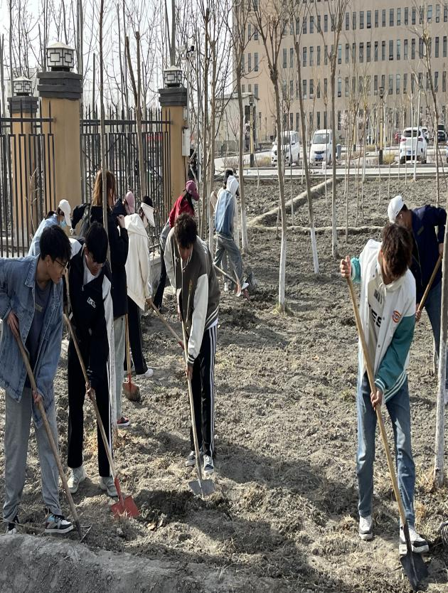 本科教学部全体师生以学院“劳动淬炼成长 实践创造幸福”劳动教育周为契机,在从学院南门至东门围墙的大面积绿化带劳动区里,党员同志们率先拿起铁锹,同师生们一起翻耕松土、挖坑施肥,整个过程认真细致,井井有条,在欢声笑语中,做到了劲往一处使,汗往一处流,活动现场热火朝天。